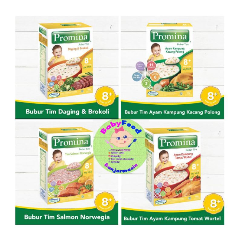 Bubur Bayi Promina 8 Bulan - Promina Bubur Tim 8 Ayam Kampung Kacang Polong Box 100g Klikindomaret - Bubur ini memiliki gizi yang lengkap dengan makronutrien seimbang (karbohidrat, lemak, protein) dan mikronutrien esensial (11 vitamin 7 mineral + omega 3 dan 6 + dha) serta mengandung serat prebiotik fos yang baik untuk tumbuh kembang bayi.